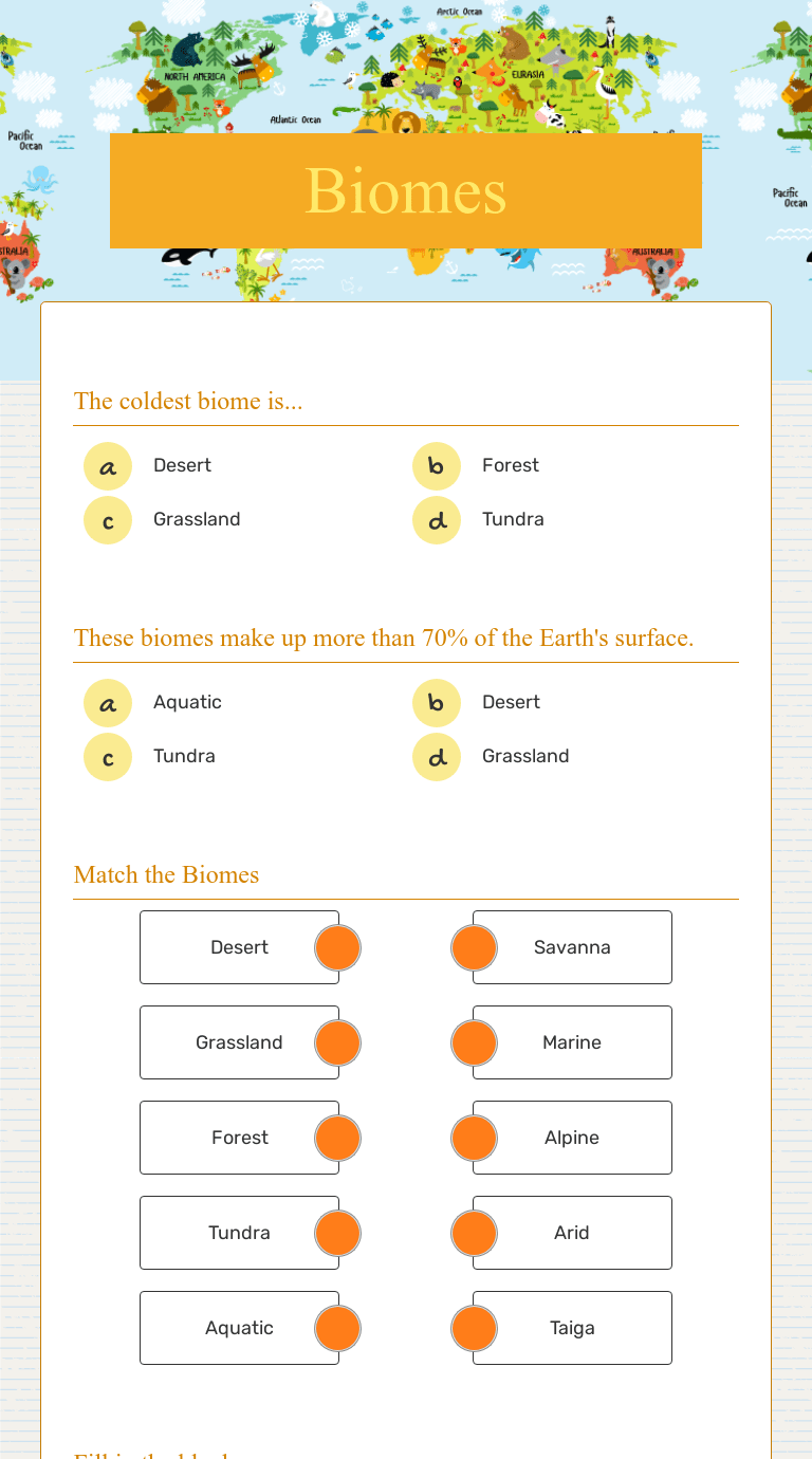 Browse biomes, worksheet resources on teachers pay teachers,. The worksheet isn't difficult, and i don't have an answer key because the answer could vary quite a bit, depending on which animals students . Learn about the many different biomes the earth is home to in this life science worksheet, which holds the answers to some simple life science questions. Reading passage · multiple choice questions · short answer questions. Most of the united states is classified as temperate deciduous forest biome.